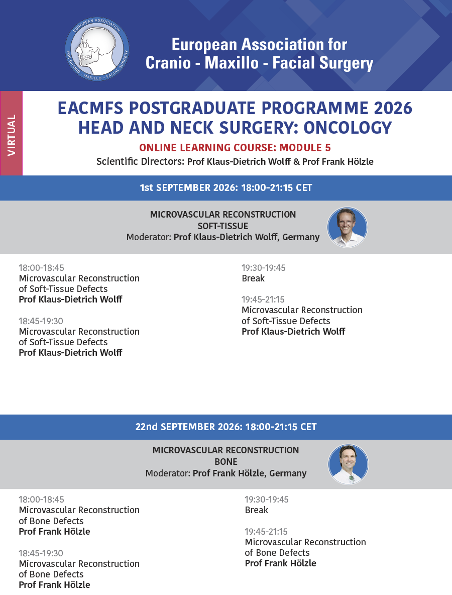 This EACMFS Postgraduate Programme is specifically designed for Oral and Maxillofacial Surgery residents in their senior year or for young specialists in the field.